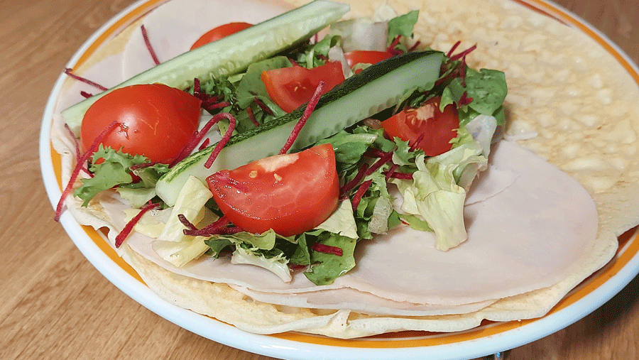 And here’s another salty version, a little pancake wrap with lots and lots of protein!