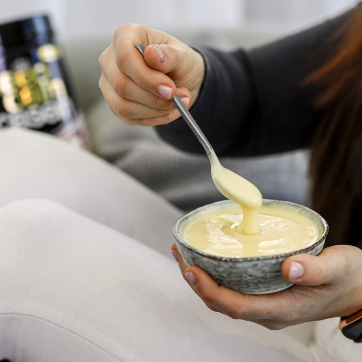 Mix 30g Micellar Casein in 300 ml (alternative) milk or water. You can consume up to 4 portions per day.