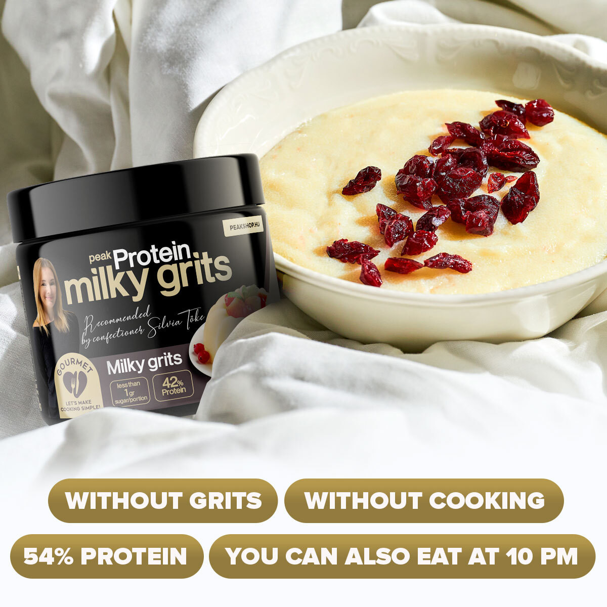 Yes, one serving of Peak Milk Snack contains ONLY 13 g of slow-absorbing carbohydrates (whole-milled oatmeal) - half of which is hunger-reducing FIBER! – and with 21 g of protein, it helps you stay in shape even with such delicacies!